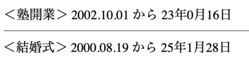人生において重要な日をいくつか記録してあり、その日から本日までの経過日数が一覧できるので、なかなか便利。そう思いながら久々にリストを見ていて気付きました。この10月で、当塾開業以来丸23年が経過してるじゃないですか……。
