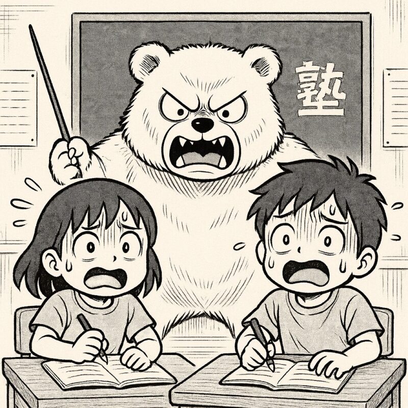 「なに〜ぃ!こんな問題も解けないのかっ!かみ殺されたくなかったら、いますぐ100字以内で解答を書けっ!解答の出来が悪かったら、頚動脈にかみつくからなっ!」